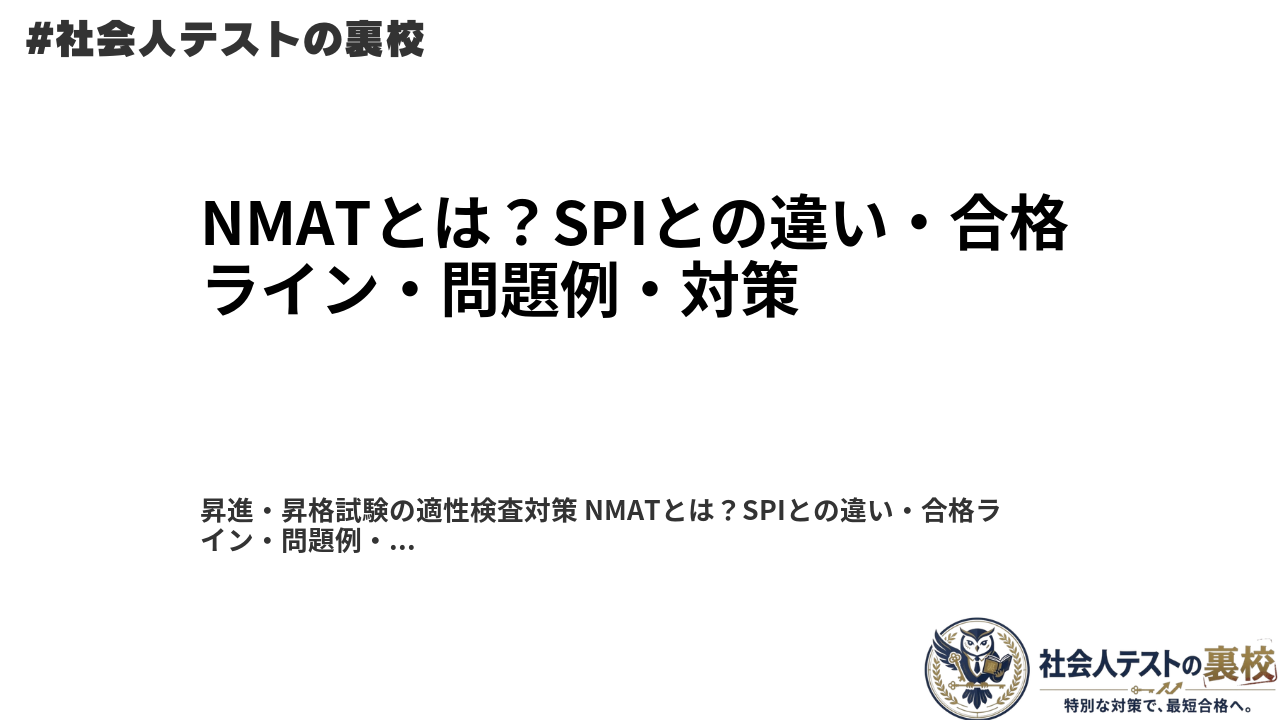 昇進試験や昇格試験で「NMATを受けてください」と言われて、SPIと同じようなものだと思う人は多いです。